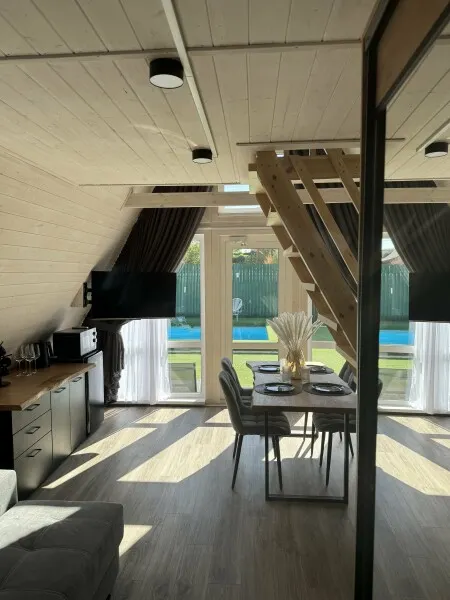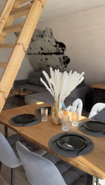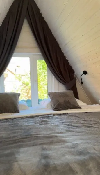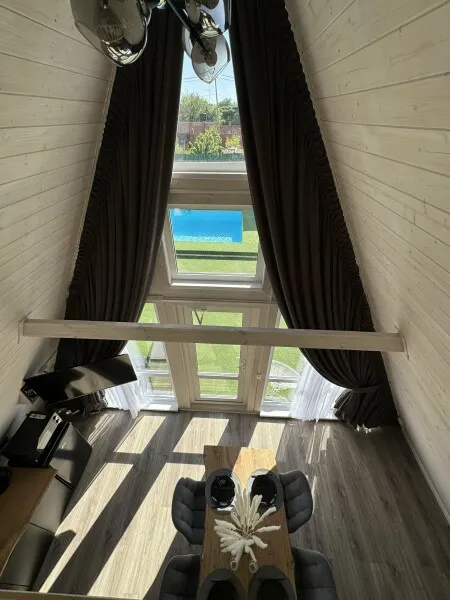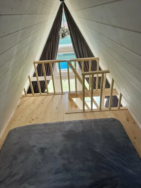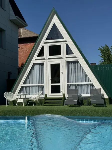 Бесспорный фаворит наших гостей. Двухуровневый уютный дом с выходом к бассейну, который вмещает в себя максимум 4 человека. Стиль, атмосфера и комфорт - слова, описывающие полностью A-frame. Идеальное сочетание роскоши и природной красоты. Вас ждут: BBQ-зона Индивидуальный столик у бассейна Раскладной диван Детская кроватка (по запросу) Двуспальная кровать 200*200 Smart TV, Wi-Fi, холодильник, чайник,набор посуды, приборы, бокалы, микроволновая печь Санузел с душевой, халат/ тапочки/ полотенца, косметические наборы Кондиционер Шторы blackout