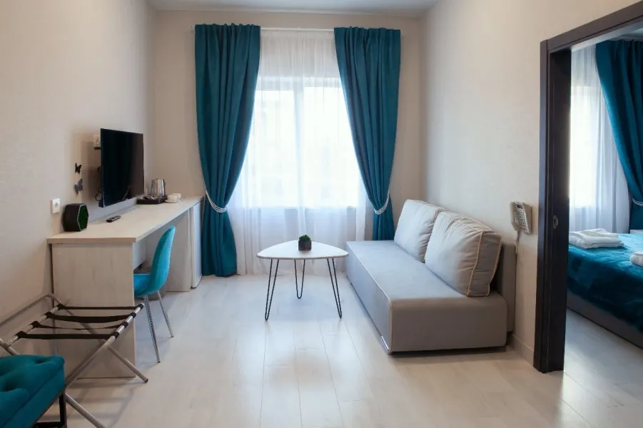 Двухкомнатный Люкс с кроватью размера "king-... Основных мест: 14000 ₽Площадь (м2): 30КондиционерСейфРабочее местоСобственный санузелХалатыТапочкиТуалетные принадлежностиФенКофе/ЧайЧайникТелевизорWiFi